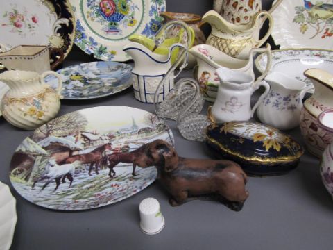 Fosters coffee pot and milk jug - Copeland Chelsea bowl, Arkansas Kingbird plate, Western Tanager plate & Maynard's Cuckoo plate  - Mason's Strathmore plate - Hutschenreuther plates - collection of milk jugs includes lustre ware - cups and saucers - basketware swans - etc