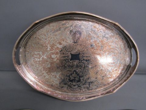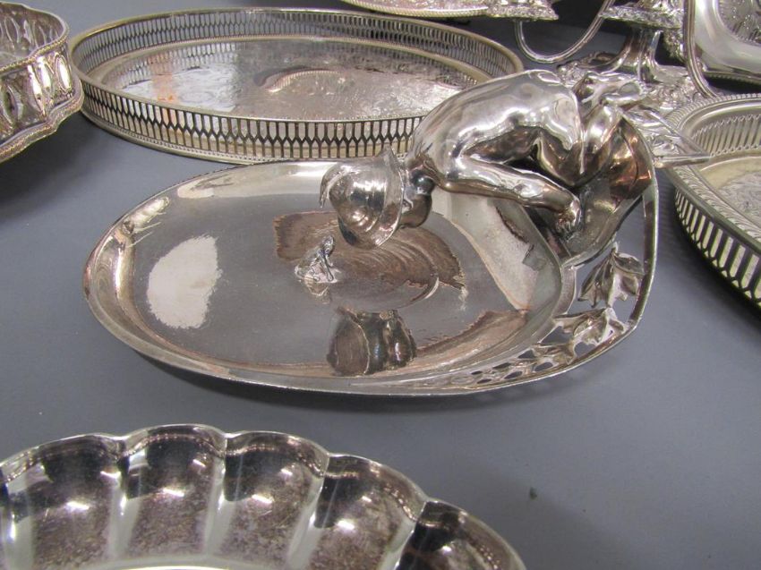 Silver plate includes large Viners tray - Viners Commemorative Jubilee tray - boy looking at frog dish (bent) - candelabra etc